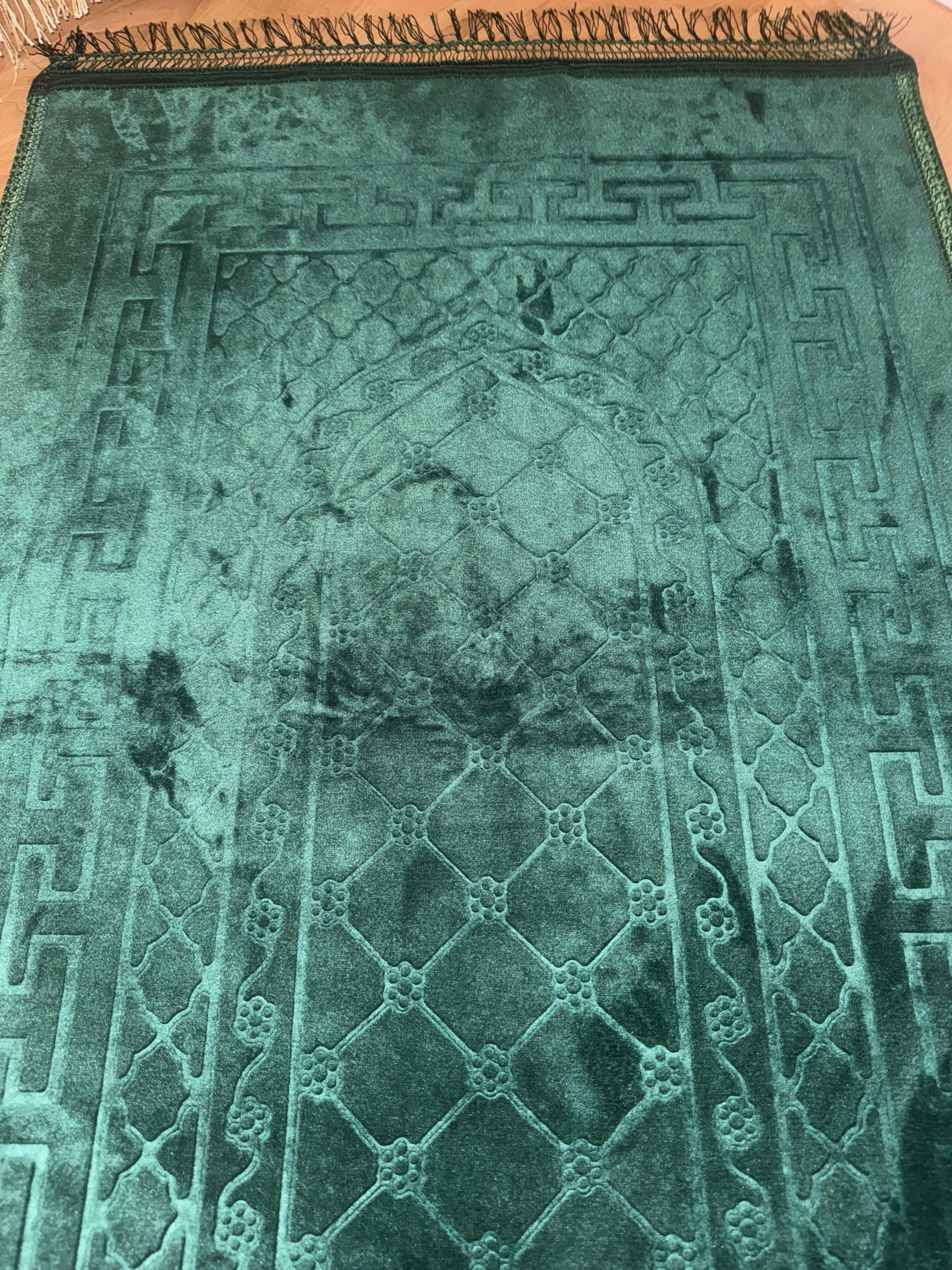 Elevate your moments of prayer with our Premium Emerald Prayer Mats, beautifully crafted from velvet plush fabricfor a luxuriously soft feel and gentle support on the knees. Designed to bring both comfort and elegance to your salah, each mat reflects timeless craftsmanship and spiritual tranquility.